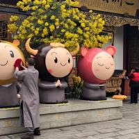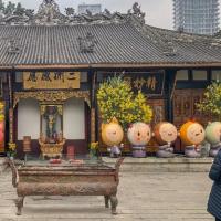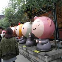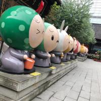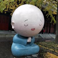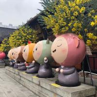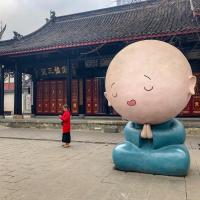 大慈寺引入了14尊巨型卡通和尚,全部身穿灰色的僧衣,其中有兩座是人形的小和尚,而其他12座是卡通的12生肖和尚,十足賣萌。很多游客只為卡通和尚而來,無心拜佛上香只為和卡通和尚拍照,放眼全國寺廟,成都的大慈寺算是開啟了大慈寺賣萌的先鋒了。