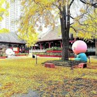 大慈寺是城區(qū)里面的廟子,在這深秋時(shí)節(jié)確實(shí)是漂亮,古銀杏樹的葉子黃了,灑滿一地,萌萌的小和尚坐在銀杏樹下面,好看極了,今天還有點(diǎn)陽光,著實(shí)幸福呀。