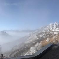 西嶺雪山第一道索道“鴛鴦池”坐大概15分鐘,下車后轉shuttle直接去映雪廣場,那里就是滑雪的地方,還有一些小吃店,基本需求都能滿足,而且驚喜發(fā)現(xiàn)山上紅旗連鎖店物價竟然與市區(qū)一樣!第二道索道“日月坪”就是上山頂,只可惜當天霧好大,3米外幾乎看不到人,陰陽界也要走一個小時才到就放棄了...不過對于南方人來說,白茫茫一片已經(jīng)足夠驚艷。