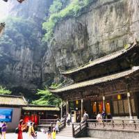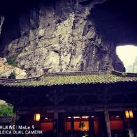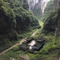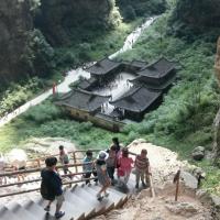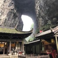天福官驛就在天坑入口附近,從景點大門口要坐電梯下去,然后就可以看見了,很多電影都在這里取景,景色不錯,從上面看效果比較好,還不錯。個人認為建造的非常好,正好與天生三橋的景色相融合,相得益彰,是非常成功的案例。很推薦去看看!