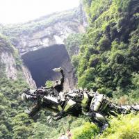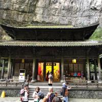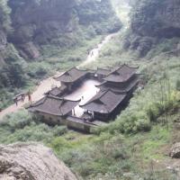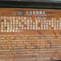 天福官驛因為張藝謀的那部電影《滿城盡帶黃金甲》火了,里面其實不大,但在天生三橋的青山包圍中這么一個古代館驛顯得特別好看,里面一直在放電影里的相關片段,終日不停。就在天坑入口附近,從景點大門口要坐電梯下去,然后就可以看見了,很多電影都在這里取景,景色不錯,從上面看效果比較好,還不錯。