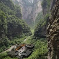 天福官驛滿城盡帶黃金甲的外景地,在一進天生三橋就能看到,最佳拍攝地是在去天龍橋的樓梯上,古色古香的宅子配上天坑的風景,就一個字,絕!位于武隆天坑地縫地質(zhì)公園內(nèi),是當年張藝謀拍滿城盡帶黃金甲時搭建的一處場景,一座仿古四合院,與周邊山水有機融合,成為了武隆天坑景區(qū)的代表性景觀。