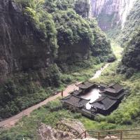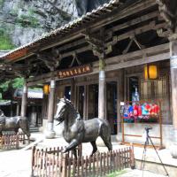 我以為天福官驛有種身居山中,道骨仙風的感覺!雖然此驛站為后期復建,但我到武隆至少有一半原因是張藝謀拍攝“滿城盡帶黃金甲”影片宣傳效應促成我到此一游。 天福官驛占據(jù)天坑位置極佳,只是里面現(xiàn)在的現(xiàn)代氣息有點濃