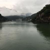 三峽郵輪從宜昌碼頭離開,不久就是西陵峽了。兩岸青山被云霧繚繞,江水悠悠向東流去,郵輪逆流而上,游人站在船頭是一眼望不到頭的江水及青山。在郵輪上吃的不錯(cuò),每間房間都帶陽臺(tái),也挺干凈的??傊浅院韧鏄返暮玫胤健?/div>