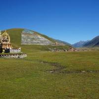 龍燈草原在甘孜州道孚縣龍燈鄉(xiāng)境內(nèi),分布于川藏公路兩側(cè),坦蕩寬闊,形如吉祥八寶圖。當(dāng)年格薩爾王曾在龍燈大草原安營扎寨,因而這片草原在藏語叫作“格薩爾通”,意為“格薩爾王征戰(zhàn)過的草原”。然姑修行點中有藏區(qū)獨(dú)一無二、世界罕見的108尊的大型歡喜佛塑像群,其規(guī)模宏大,造型獨(dú)特;草原邊緣還保留不少格薩爾王當(dāng)年征戰(zhàn)的遺跡。