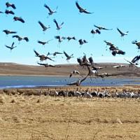 大山包位于昭通市西部,年平均氣溫6.2℃。作為國家一級(jí)保護(hù)動(dòng)物——黑頸鶴的越冬棲息地,已被國內(nèi)外的科技工作者、攝影家所熟知。每到冬季,大批的科技工作者、攝影家背負(fù)行囊,登上了大山包;在大山包的跳墩河水庫、大海子水庫兩個(gè)地方可看到成群結(jié)隊(duì)的黑頸鶴在湖邊覓食、棲息。