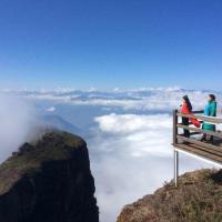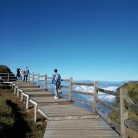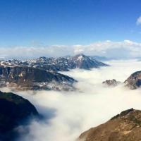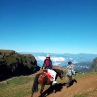 11月和家人自駕去的大山包,運(yùn)氣不好去大海子因?yàn)榇箪F什么都沒有看見,但是還好去雞公山大霧散開藍(lán)天白云,雞公山的險(xiǎn)峻壯麗,云海很漂亮,草原也很漂亮 讓人心醉!我們花了一百元( 四個(gè)人)喊了一個(gè)當(dāng)?shù)氐膵D女帶我們走的小路進(jìn)景區(qū),因?yàn)榍耙惶煜铝擞曷泛軤€,小車的話有些路段很難通行,SUV還是算順利通過了,進(jìn)入景區(qū)就隨意出發(fā)了,跳墩河雞公山一邊,仙人田和翼裝飛行訓(xùn)練基地一邊。跳墩河騎馬上雞公山四個(gè)人一百元單邊。個(gè)人覺得還是不貴。