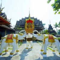 傣族園里面有西雙版納最古老的,1400多年歷史的曼松滿古佛寺,和非常有特色的勐罕曼聽佛塔寺塔包菩提樹。千年曼春滿古佛寺,是傣族人的信仰,南傳上座部佛教文化的傳承地之一,虔誠的傣家人全民信佛,每當特定的日子,傣家人都會早早的到寺廟里祈福。
