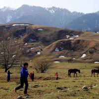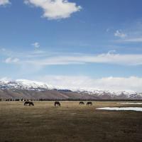 那拉提草原——位于新疆伊犁,是個(gè)丘陵?duì)畹牟菰?,這里有山,有水、有林,被《中國(guó)國(guó)家地理》評(píng)為全國(guó)最美的六大草原之一。往年的4月中,這里已經(jīng)野花開遍草原,今年趕上春寒,還是白雪蓋地,到是另一番景色,一群群的馬兒在悠揚(yáng)的吃著草,山坡上有雪覆蓋著,形成了一幅大自然的山水墨畫,生動(dòng)而充滿了活力。景區(qū)人不多,非常適合攝影創(chuàng)作。