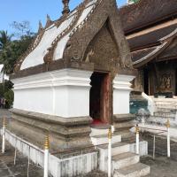 瑯勃拉邦市區(qū)不大,隨便走走,到各個景點(diǎn)基本上不太需要坐車。香通寺是一座古老而宏偉的寺廟,建于1560年,整座寺廟面積不大,但不同建筑的色彩,給人極大的視覺沖擊,尖尖的大斜度屋頂,極具東南亞特色,游覽時間30分鐘到1小時足夠,門票2萬。