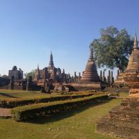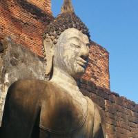 素可泰歷史公園非常值得去。我從清邁過去,來回各坐了5個半小時的長途汽車,但仍覺得不虛此行。公園門票一天有效可多次進(jìn)園。建議分早晚兩次進(jìn)園。佛像大多面向東方,光線關(guān)系早上和下午四五點(diǎn)拍照效果完全不一樣,各有特色,晚上六點(diǎn)多開始主景區(qū)還有燈光,又是另一種風(fēng)景。中午太熱太曬,可以安排吃飯和回酒店休息。歷史公園外還有幾個景點(diǎn)可以去。沙潘欣寺有些遠(yuǎn),在一個小山丘上,可以看日出及古城全貌。西春寺的大佛不可不看,需另買門票。