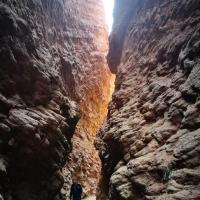 行走在庫(kù)車大峽谷,紅色刺眼的巖如同在火焰一般,你就是雖火焰跳躍的舞者。更美的是,某段裂谷,一片藍(lán)天,置身處地的感受到了什么才是一半是海水,一半是火焰。當(dāng)然,走完整個(gè)大峽谷是需要勇氣的,水姚帶夠,萬(wàn)一沒水了,谷中有幾處天然泉眼,這也算是造物主的造化吧。