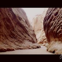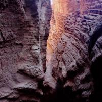 庫(kù)車大峽谷,大峽谷近似呈南北弧形走向,開口處稍彎向東南,末端微向東北彎曲,由主谷和七條支谷組成,全長(zhǎng)5000多米,谷端至谷口處自然落差200米以上,谷底最寬53米,最窄處0.4米,僅容一人低頭彎軀側(cè)身通過。谷側(cè)奇峰嶙峋,爭(zhēng)相崛起;峰巒疊嶂,劈地摩天,崖奇石峭,磅礴神奇;神洞秘窟,各蘊(yùn)其意。谷內(nèi)蜿蜒曲折,峰回路轉(zhuǎn);步步有景,舉目成趣;泉水叮咚,鳥叫蟬鳴,寒暑不浸,游人稱絕。整個(gè)峽谷猶如一條尾震天山頭,口飲庫(kù)河流(開口于庫(kù)車河),曲身九十九的巨龍劈山而臥,呼風(fēng)喚雨,神秘莫測(cè)。更令人稱奇的是,距谷口1400米深處,高約35米的崖壁上,有一始建于盛唐時(shí)期,壁畫丹青的千佛洞遺址,就文字記載和繪畫藝術(shù)而言