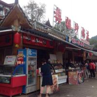 恩施女兒城一共去了二次,一次是傍晚小雨中游的女兒城,品嘗張關合渣,吳記手工桃片,逛一間間特色小店,賞民俗表演。意外見到曾獲得青歌賽金獎得主撒兒葉嗬主唱助陣,表演激情四射,演唱高亢嘹亮。還榮幸地去和他合了個影。 第二次是臨走之前,惦記著再賣十盒吳記桃片膏(進大門主干道與畢茲卡大街交界第二排的一家,她家桃片糕香甜軟綿核桃仁特多)。中午在面家小廚吃午飯,菜肴美味價格美麗,推薦臘肉山筍和香煎魚塊。 一定要去這家哦。 恩施兒女城,濃濃民族風。逛完風景于傍晚來最佳。