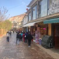 雙廊古鎮(zhèn)因?yàn)闂铥惼级忻?,她把自己的房子建在了?zhèn)上的玉幾島,取名太陽宮和月亮宮。古鎮(zhèn)從南口進(jìn)北口出,南面熱鬧人多,北面冷清,很多店面都關(guān)門了。 和所有的古鎮(zhèn)一樣,雙廊基本也是由客棧、小店、餐廳、紀(jì)念品店組成。因?yàn)樵诙_?,所以有一些風(fēng)景可以拍照。