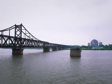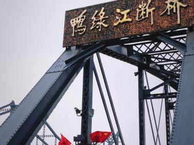 丹東鴨綠江斷橋,斷橋原為鴨綠江上第一座橋,始建于1909年,長(zhǎng)944.2米,寬11米,十二孔,從中方數(shù)第四孔為開閉梁...
