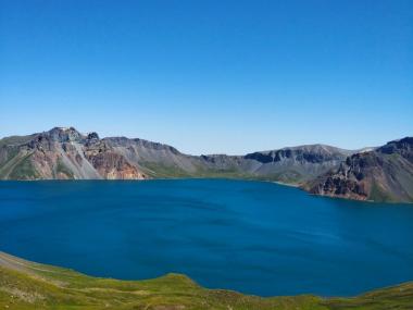 長(zhǎng)白山天池是一座休眠火山,火山口積水成湖,夏融池水湛藍(lán);冬凍冰面皓白,被16座山峰環(huán)繞,僅在天豁峰和觀日峰間有一狹道...