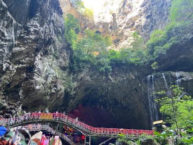洞天仙境集天坑、溶洞之景于一體,坑洞相連,非常奇特。這里天坑密布,綠樹成蔭,洞內(nèi)形態(tài)各異的鐘乳石錯落其中,在景觀燈的...
