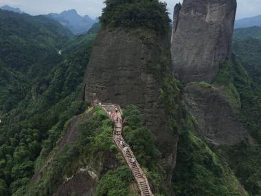 駱駝峰由四座石峰組成頭、軀、脊、尾,錯落有致,形象非常逼真。駱駝身長273米,高187.7米。它高聳于群峰之上,襯托...