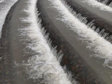 這里有網(wǎng)紅階梯瀑布,水流經(jīng)過層層疊疊的水壩,非常壯觀,水流很大,可以盡情的玩耍,適合帶孩子們游玩。?鵝卵石鋪筑的壩頂...