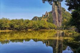仙都鼎湖峰是縉云縣仙都風(fēng)景名勝區(qū)的核心,狀如春筍,直刺云天,高170.8米,是《仙劍奇?zhèn)b傳》《神雕俠侶》《花千骨》《道士下山》等眾多影視作品的拍攝地。這里堪稱“天下第一峰”“天下第一筍”,峰巔蒼松翠柏間蓄水成池,四時不竭。唐代大詩人白居易曾用"黃帝旌旗去不回,片云孤石獨崔嵬。有時風(fēng)激鼎湖浪,散作晴天雨點來。"來描繪這個天下奇觀。