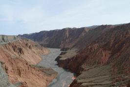 天山神秘峽谷海拔1600米,最高山峰海拔2048米。由紅褐色山體組成,當(dāng)?shù)厝朔Q之為克孜利亞(維吾爾語,意為“紅色的山崖”)。峽谷主谷長2.7km,另有4條支谷,合計長度為3km。神秘大峽谷為億萬年風(fēng)雨侵蝕、山洪沖刷而形成,天山神秘大峽谷集雄、險、幽、靜、神為一體,身臨其境者無不贊嘆叫絕。距谷口1.4km處山崖上發(fā)現(xiàn)阿艾石窟,窟內(nèi)南、北、西壁上殘存壁畫的漢文字,為大峽谷增添了色彩。
