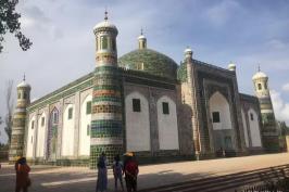 香妃墓位于喀什市東郊5公里處的浩罕村,原名為阿帕克霍加麻扎,是新疆最著名的伊斯蘭教圣裔家族的陵墓,后來因傳說乾隆皇帝的香妃埋葬于此。事實上這里是一大家族五代72人的陵墓群,香妃墓只是其中之一。香妃墓是一座大院,院內(nèi)修建了門樓、小禮拜寺、大禮拜寺、教經(jīng)堂和主墓室等建筑,建筑都恢宏漂亮,又帶有非常濃厚的伊斯蘭教風(fēng)格,這種綠色瓷磚、圓拱門窗的房屋非常特別,可以好好參觀一下。