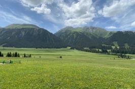 那拉提草原位于伊犁州新源縣境內(nèi),是世界四大河谷草原之一,素有"祖母綠寶石"之稱。在草原上山坡上,草原美景一覽無余,還有被稱作“宇”的白色氈房,不僅點綴著青山綠水,而且還證明著他們是千百年來生活在這里的主人。在那拉堤大草原上還可騎"汗血寶馬"盡情馳騁,體會當(dāng)?shù)毓_克民俗風(fēng)情。