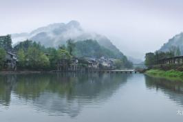 碧波輕舟,四周青山環(huán)繞邂逅煙雨柳江