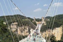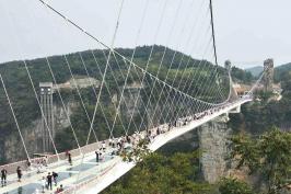 1、世界第一長(zhǎng)的高山峽谷斜拉玻璃橋奇觀——張家界武陵源“云天渡”