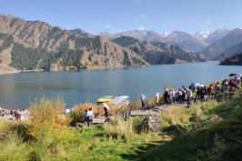 天山天池古稱“瑤池”,是以垂直自然景觀帶和雪山冰川、高山湖泊為主要特征,以遠古瑤池西王母神話以及宗教和獨特的民族民俗風情為文化內涵,是世界自然遺產(chǎn),國家AAAAA級旅游景區(qū)。由融化的雪水和雨水 積蓄而成,平均水深60米,三面環(huán)山,現(xiàn)修有環(huán)湖棧道,全長13公里,走下來需5-6個小時。