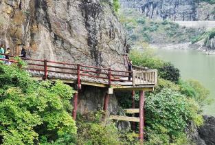 石門棧道景色還可以。棧道分為上棧道和下棧道,下棧道沒有多少了,應(yīng)該是最古老的,因?yàn)殡x水面較近符合當(dāng)時(shí)古代場景。但是看風(fēng)景當(dāng)然是站的高望的遠(yuǎn),上棧道適合觀景。