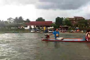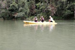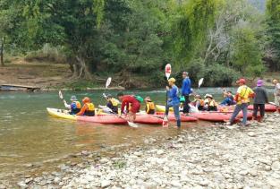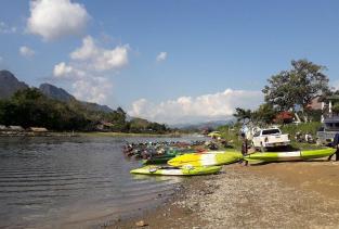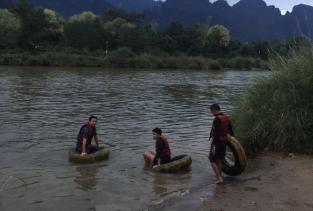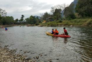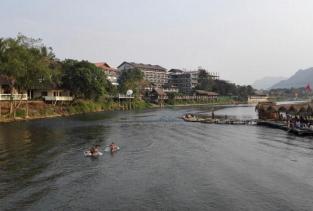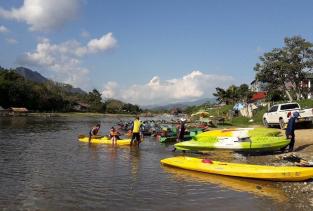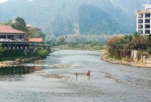 老撾萬榮的南松河,每天有很多游客坐著輪胎順著河漂流,更多的是劃kayaking沿著河從上游向下游漂流。