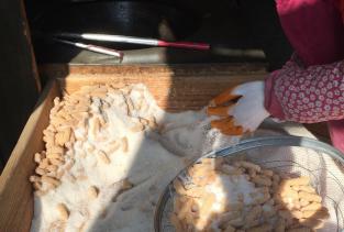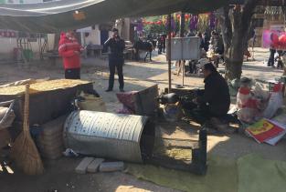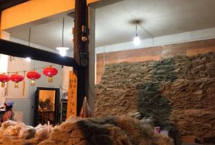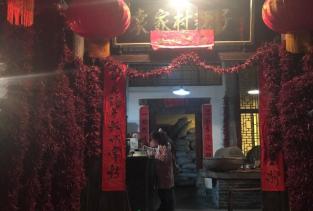 關(guān)中的袁家村有些象重慶的磁器口,應(yīng)該是當(dāng)?shù)卮蛟斓募〕?、地方特色活?dòng)為一體的名俗游樂(lè)場(chǎng)所。夜間漫布于掛滿大紅燈籠的村中,吃一碗豆腐腦、看一看張氏皮影的現(xiàn)場(chǎng)制作、坐一坐放著老片子的竹凳茶坊,在那掛滿辣椒的門面前、堆積如稻草的手工粉堆中、掛滿大小葫蘆的唐韻軒內(nèi)拍拍照,實(shí)在很愜意!