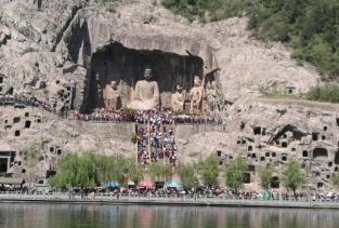 1.龍門石窟是中國石刻藝術(shù)寶庫之一,現(xiàn)為世界文化遺產(chǎn)、全國重點(diǎn)文物保護(hù)單位、國家AAAAA級旅游景區(qū),位于洛陽市南郊伊河兩岸的龍門山與香