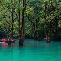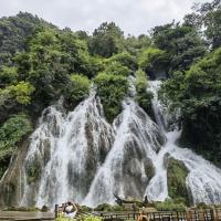 荔波大七孔是以原始森林、峽谷、伏流、地下湖為主體的景區(qū),距小七孔鴛鴦湖景區(qū)約5公里。景觀峻險(xiǎn)神奇、氣勢(shì)雄峻磅礴,山高谷深,水流湍急,洞中有瀑,瀑下有湖,湖上有天窗,陽光投下形如日月星斗,還有一座高80余米的天生橋巍然而立被專家們譽(yù)為“大自然神力所塑造的東方凱旋門”,觀之令人肅然起敬,為大自然神力所折服。 大七孔風(fēng)景區(qū)的結(jié)束語:一段安靜悠閑缺乏驚喜的行程。也許把大小七孔的游覽順序調(diào)整一下,在視覺感官上會(huì)更合理些