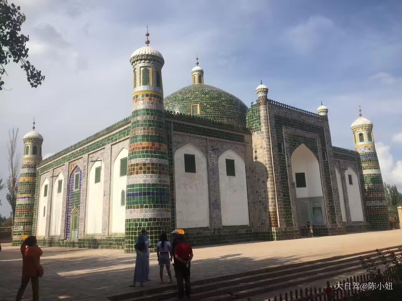 艾提尕爾清真寺 艾提爾清真寺,當(dāng)?shù)厝朔Q為“艾提卡爾”清真寺。它位于喀什市中心,是新疆最大規(guī)模的清真寺。 它的正門是鵝黃色的建筑兩邊是兩座宣禮塔。外面是艾提卡爾廣場,喀什人民過雙節(jié),新疆民族節(jié)日和國定節(jié)日,有盛大的慶?;顒右话愣荚谶@個廣場舉行。 大廳里的柱子都是整根的白楊樹雕刻成的第一根的花紋都各不相同。墻上的掛毯也是有很多講究的,所以最好跟著講解員,這樣可以更多的了解到清真寺的歷史和文化。