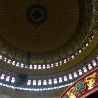 重慶中國(guó)三峽博物館主體建筑正面與人民廣場(chǎng)、人民大禮堂保持三位一體。其余部分順地勢(shì)地貌而建,并與山體融為一體,結(jié)合地勢(shì)高差與建筑的圍合與半圍合,呈現(xiàn)出山水主題的園林景觀,舒展平緩變化的體量似從山體中生長(zhǎng)雕琢而成。博物館共5層,總建筑面積為42497平方米。