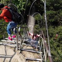 烏龍寨是楊家寨景區(qū)中最為奇險(xiǎn)的地方,到烏龍寨是需要花點(diǎn)功夫的,鉆洞也鉆過了,沿崖縫行走著,又或者自巖道上側(cè)身而行。 TIPS——到達(dá)烏龍寨之前,我們實(shí)在負(fù)重的要死掉了,終于門口看到了簡易版寄包處,花了2塊錢寄放在了村民那里,拿了些貴重物品(也就是錢辣證件辣之類的),因?yàn)槌隽藶觚堈€是要原路返回的,所以不用擔(dān)心走了冤枉路。