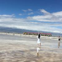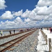因為2019第十八屆環(huán)青海湖國際公路自行車賽環(huán)湖賽賽道經過茶卡鹽湖,去的時候好像在預演,停車場出口不放行,所有車堵了幾百輛近一小時,終于放了,收費口還是悠閑地在收費,我目測一個收費員就走進走出收費亭4次,那一排車沒動過……剛剛車開始走,火車經過,名副其實的慢車,開到中間停了5分鐘,如果想體驗慢生活,推薦來,停車場就可以玩?zhèn)z小時。景點人太多,不知道網紅照片都怎么拍出來的,返程的電瓶車還停了,70歲老人在3000米海拔走得快虛脫……不說了看圖吧,來的人都是勇士。