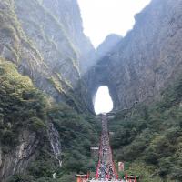 天門(mén)山景區(qū)是到張家界的第一站,雖然是錯(cuò)峰出行,但排隊(duì)坐索道還是用了大概40分鐘。被稱(chēng)為亞洲最長(zhǎng)索道,大概要坐28分鐘才能到山頂。山上景色別有洞天,還走了玻璃棧道,最后天門(mén)洞的999級(jí)臺(tái)階甚是壯觀(guān),還有幸看到了跳傘。