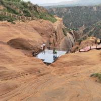 波浪谷正在開發(fā)中,區(qū)域很大,必游1丶3號區(qū),5號區(qū)可選擇,2號正在施工不能進(jìn),4號很小可放棄。全免費,1號區(qū)由當(dāng)?shù)厝碎_車帶進(jìn),最佳時間是早上6點游到9點,看到高原日出和朝霞中的峽谷,非常壯觀。谷底有沼澤蘆葦,有僅容一人側(cè)身而入的一線天波浪峭谷。