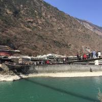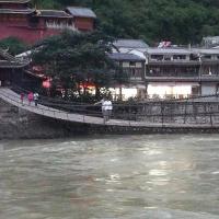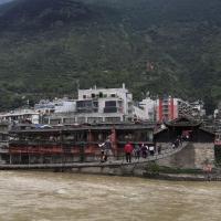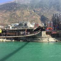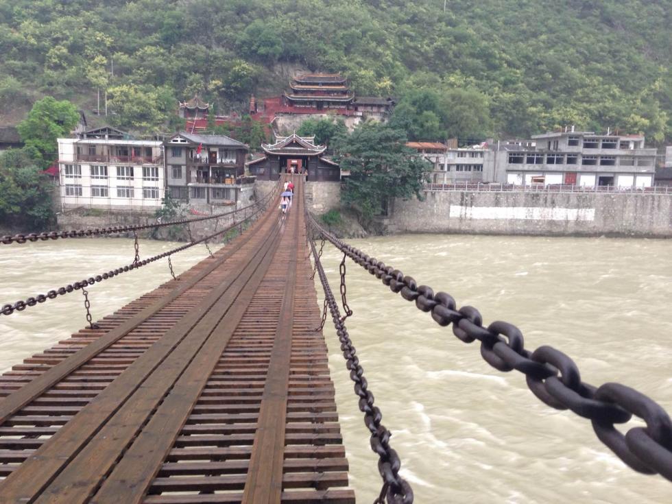 瀘定橋其實是一個很小的景點,就是一座鐵索橋,但因為它獨特的歷史意義,所以成為一個必到的地方。如今橋面鋪上了木板,每有風(fēng)吹過,依然抖得厲害。我嘗試了多次,最終沒敢過去。