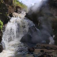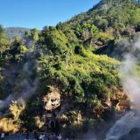 九龍瀑布群景點人不多,但是風景很美,整體不大基本一個小時到一個半小時就可以逛完,瀑布下面有很多黑天鵝一點也不怕人 很好看,上面最大的瀑布比較有氣勢,下面小的瀑布會比較有趣味,因為瀑布水下來 還是比較渾濁的,但是遠看拍攝風景還是很容易出片的,九龍瀑布群豐水季節(jié)水流湍急,瀑面寬闊,河水從懸崖瀉出,以雷霆萬鈞之勢傾入崖底腳潭,響聲如雷,轟振河谷,氣勢磅礴。 瀑底觀之,宛如天河傾瀉,似萬丈臨空飛降,銀煉垂空,景色壯麗,腳潭上空玉絮飛花,濺珠結(jié)霧,彌漫空中,化為朦朦細雨撒向下游河谷,艷陽輻射,水霧化成五彩長虹,絢麗燦爛,色彩繽紛,身臨其境,如入仙境,使人飄飄欲仙,浮想聯(lián)翩。