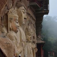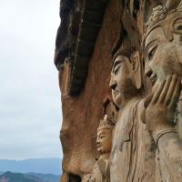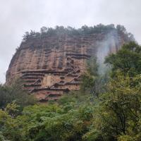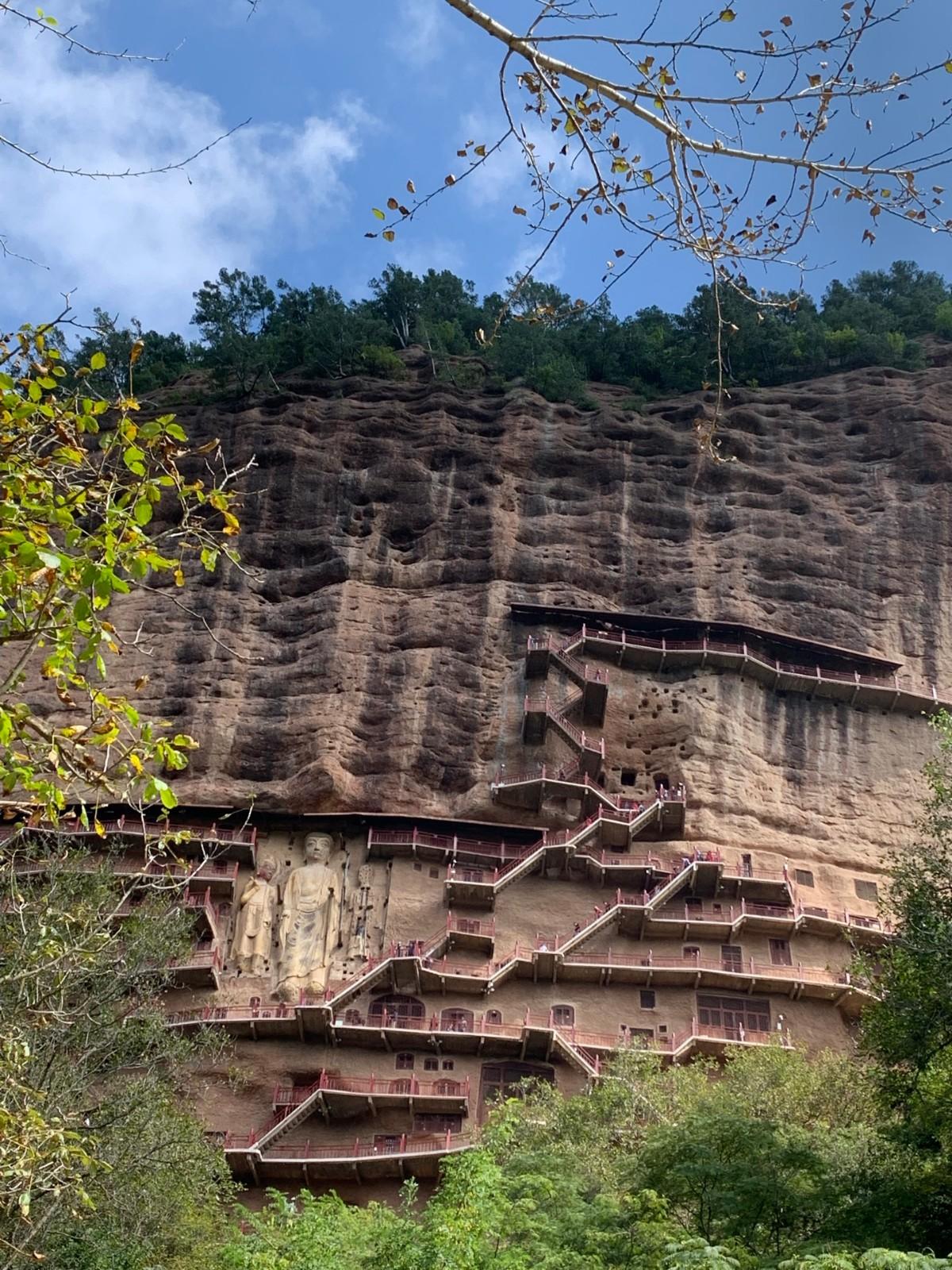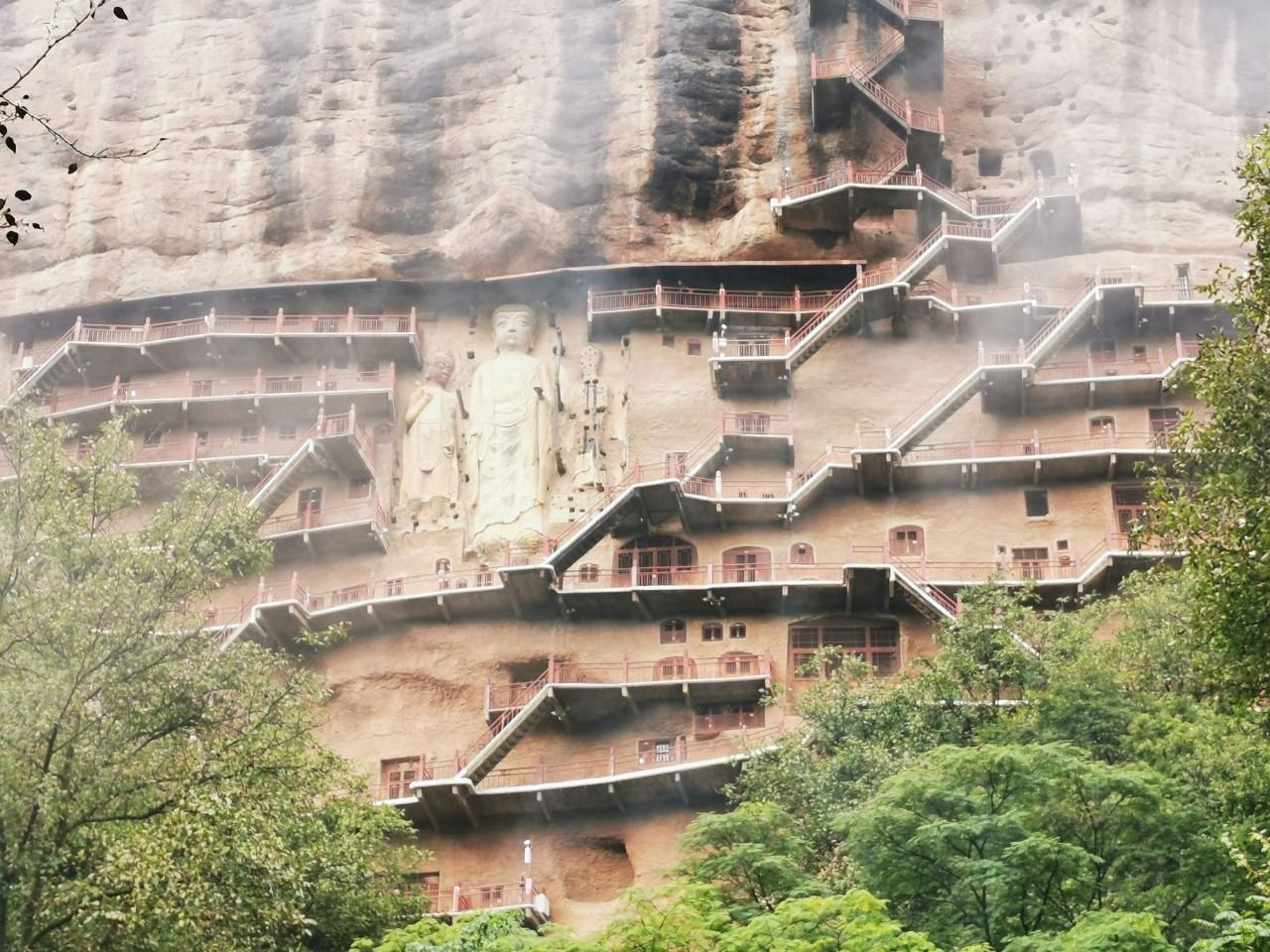 去年九月伊始前往天水的麥積山石窟,也是此次聽聞麥積山石窟是中國(guó)四大石窟之一??赡芟啾绕渌齻€(gè)名氣上略遜一籌,不過(guò)游覽之后亦覺是個(gè)值得一去的地方。我們是自駕游直接將車開到了麥積山石窟B區(qū)景區(qū)入口處,此處也可乘坐從天水市火車站直達(dá)景區(qū)的公交車。九月的天藍(lán)的不像話,陽(yáng)光燦爛。進(jìn)入景區(qū)購(gòu)買門票和纜車票,乘坐景區(qū)內(nèi)電車一路蜿蜒而上,周圍是特有的丹霞地貌的水成巖。到達(dá)山腳下仰頭,麥積山形如麥垛,遙遙望見山體間開鑿的各色佛像,以及穿梭其中的層層棧道。整個(gè)山體并不大,但是沿著棧道往上,確深陷于大大小小的巖洞中,麥積山石窟的塑像整體還算保存的較為完整,雖然一部分遭受了天災(zāi)打擊,或腐蝕或重塑,但大都保有獨(dú)特的原味,石窟高低起伏數(shù)不勝數(shù),當(dāng)然沿著棧道一路向前也是獨(dú)具風(fēng)味。不得不感嘆今不如古的偉大創(chuàng)造。