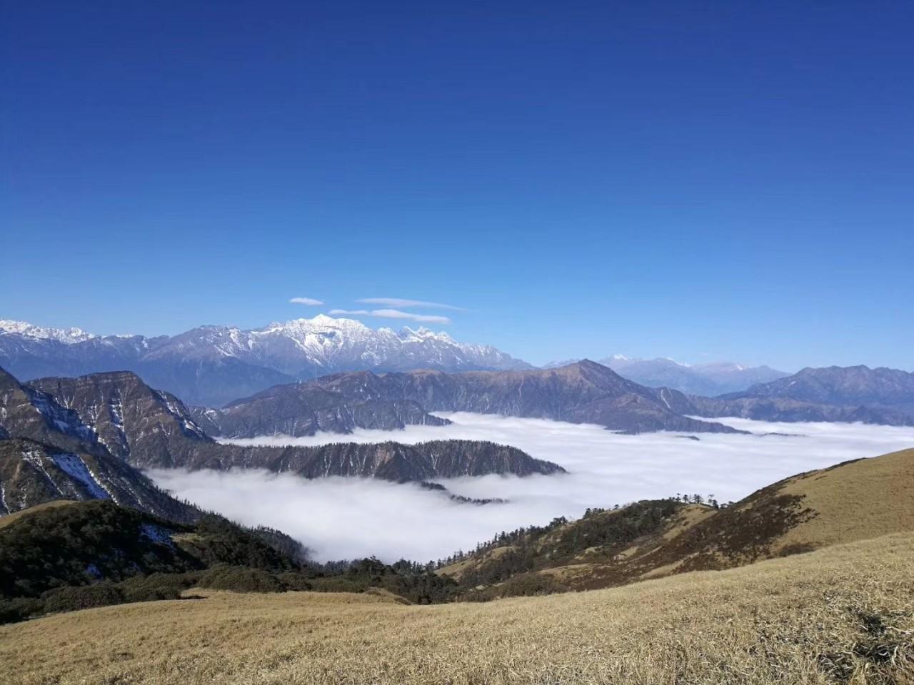 四人同山生態(tài)原始,植被豐富,小熊貓賴以生存的矮竹叢生,山間荷塘蜿蜒舒展,花海杜鵑堪稱一絕,從林古木錯(cuò)落有致,其壯觀的云瀑無(wú)以能比,讓人感覺(jué)踏步于空中,如仙如神四周連綿不斷的群山錯(cuò)落有續(xù),層次分明,讓人油然而生一種渺小的感覺(jué),恨不得立即飛到云層之上。
