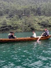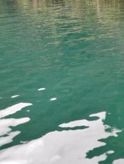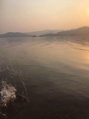 走進東江湖,藍天白云間,只見翠綠的山巒起伏環(huán)繞,水天一色。過往游艇在水中劃過一道道優(yōu)美的弧線,大風括過,白浪滔滔。游人們在船上歡聲笑語,更有一些人生怕放過眼前的任何一個美景,拿出隨身攜帶的相機或手機趕緊拍照。這時只聽見船頭兩個小孩在歡叫,原來他們看見了水中有幾尾魚兒在游動,在波光粼粼中時隱時現(xiàn),不一會兒便不見了蹤影。