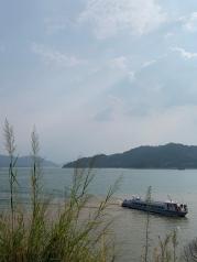 乘坐游船瀏覽美麗的東江湖的風景,想用“心曠神怡”這四個字來概括當時的心情,兩岸風景秀麗,空氣也是相當清新,站在船頭,海風徐徐吹來,真的非常舒服。