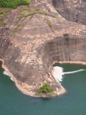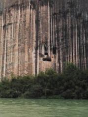 在大學(xué)同學(xué)的盛情邀請(qǐng)下再次來到還未完全開發(fā)的景點(diǎn)“飛天山”。那天天氣很熱,景區(qū)里游客稀少,非常適合出游!我們先是泛舟湖面,湖邊的山石十分奇特,除了頂部郁郁蔥蔥一片,其余部分全是堅(jiān)硬巖石,好似一個(gè)個(gè)盆栽,矗立在碧波般的水面!游船行至一座山涯底下,我們還見到了景區(qū)特色景觀“懸棺”,沒想到在三峽巴蜀之地以外也有這番習(xí)俗,讓人增長見識(shí)!游船上岸,駕車穿梭于這些盆栽般山石之間,走走停停觀賞著,覺得別有一番味道!