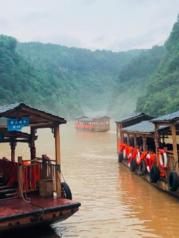 去張家界大峽谷景區(qū)的時候趕上雨天,玻璃橋上除了霧就是霧。去這里真的要挑天氣喲。最后坐的那個船還是挺不錯的,出去以后有小吃街,有個小土豆超級好吃。